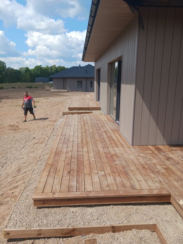 Tai papildoma erdvė jūsų namams, suteikianti galimybę mėgautis lauko aplinka patogiai ir stilingai. Kiekviena terasa projektuojama pagal individualius poreikius, atsižvelgiant į namo ar pirties, sodo namelio dizainą, sklypo ypatybes ir gyvenimo būdą. Galime pasiūlyti tiek standartines terasas, tiek unikalias konstrukcijas su integruotomis stoginėmis, poilsio zonomis ar lauko baldais. Naudojame tik aukštos kokybės medžiagas, atsparias drėgmei, saulės poveikiui ir temperatūros svyravimams. Konstrukcijos tvirtos, ilgaamžės ir patogios naudoti.